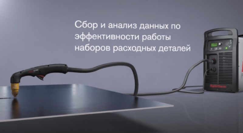 - Возможность анализа таких характеристик работы системы, как количество зажиганий, переносов и времени горения дуги в мобильном приложении Powermax SYNC, подключив к смартфону устройство для считывания данных из наборов расходных деталей (приобретается отдельно).