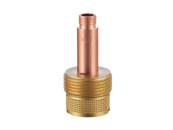 Держатель цанги (бол. г.л.) (TS 17—18—26) применяется для фиксации и поджатия цанги, а также для установки сопел и подачи и распределения в них защитного газа. Используется для установки стандартных сопел в головке горелок TS 17, TS 18, TS 26, их модификациях и аналогах. Материал— медь.