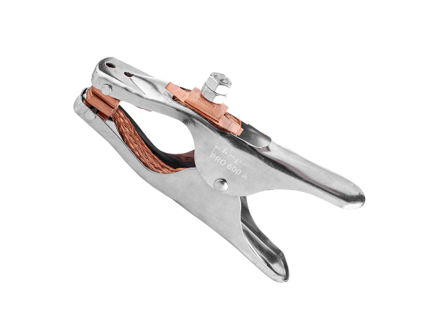 Клемма заземления 600А-35% ПВ, губки-латунь, корпус-сталь, двойная медная коса. Предназначена для присоединения сварочного кабеля к свариваемому металлу.