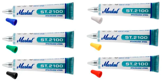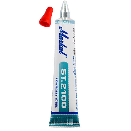 Маркер-паста в тубе Markal ST 2100 используется для нанесения маркировки и разметки на металл, в основном на нержавеющую сталь и различные сплавы. Маркировка перманентная (нестираемая), водостойкая и не выгорает на солнце. Маркер Markal ST 2100 наполнен уникальной краской с пониженным содержанием галогенов, хлоридов и серы, что позволяет использовать его для маркировки нержавейки. Маркировка не приводит к последующей коррозии.