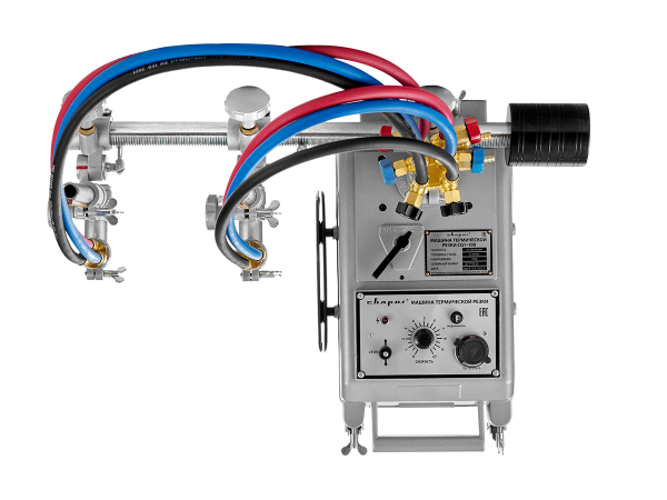Резка выполняется двумя газокислородными резаками, установленными в держателях на самоходной тележке. Зажим крепления резаков для машин термической резки имеет реечный механизм, который позволяет перемещать резаки, регулировать их высоту установки над поверхностью металла, а также устанавливать угол наклона резаков в пределах ±45°. Положение резаков фиксируется винтами.
