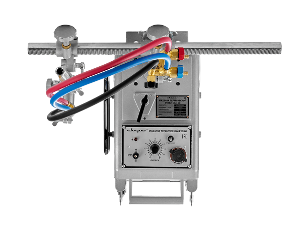Резка выполняется газокислородным резаком, установленным в держателе на самоходной тележке. Зажим крепления резака для машин термической резки имеет реечный механизм, который позволяет перемещать резак, регулировать его высоту установки над поверхностью металла, а также устанавливать угол наклона резака в пределах ±45°. Для фиксации резака предусмотрены винты