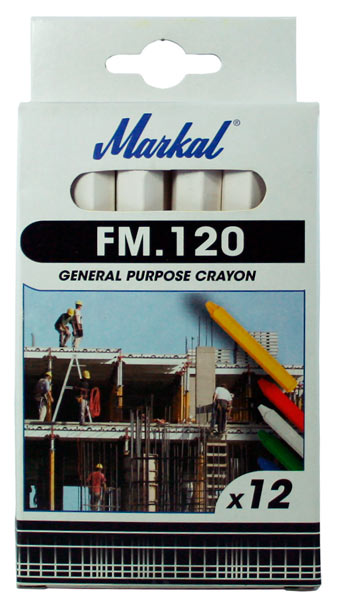 Недорогой маркер-мелок Markal FM.120 предназначен для маркировки практически любых материалов и поверхностей. Мелок хорошо пишет по металлу, дереву, пластику, картону, бетону, резине и другим материалам. Мелок Markal FM120 предназначен для промышленного и индустриального пользования и выпускается в виде твёрдого бруска краски с добавками воска и цветовых пигментов.