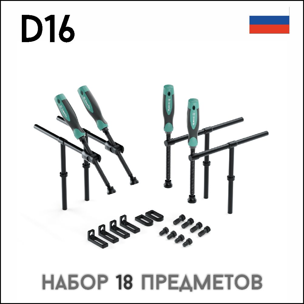 Набор оснастки D16 для сборочно-сварочных столов из 18 предметов.