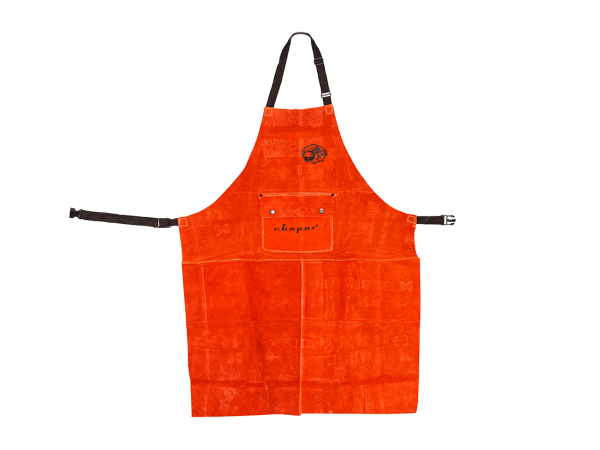 Фартук изготавливается из шлифованного, прочного и долговечного спилка. Швы укреплены двойной строчкой прочными нитками. Ремни изготовлены из синтетической прочной тесьмы. Имеется регулировка на шее и удобная застежка фастекс на поясе, что обеспечивает надежную фиксацию фартука. Имеет нашитый карман с клапаном на металлических кнопках. Спилковый фартук имеет высокую прочность. Размер фартука (ДxШ): 90×70 см. Изменение логотипа. Улучшенное качество пошива изделия.