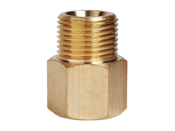 Переходник 3/8—1/8 предназначен для перехода с резьбового соединения 3/8G на резьбовое соединение 1/8G. Материал— латунь.