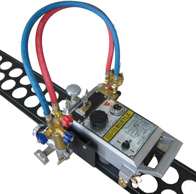 Управление перемещением тележки HK-12 Beetle и работой резака осуществляется с помощью аналоговой панели управления, расположенной на тележке. Блок резки состоит из газовых вентилей с клапаном, консоли с противовесом и резака, установленного в держателе. Держатель резака имеет реечный механизм, который позволяет перемещать резак вдоль консоли, регулировать высоту установки резака над поверхностью металла, а также устанавливать угол наклона резака в пределах ±45°.