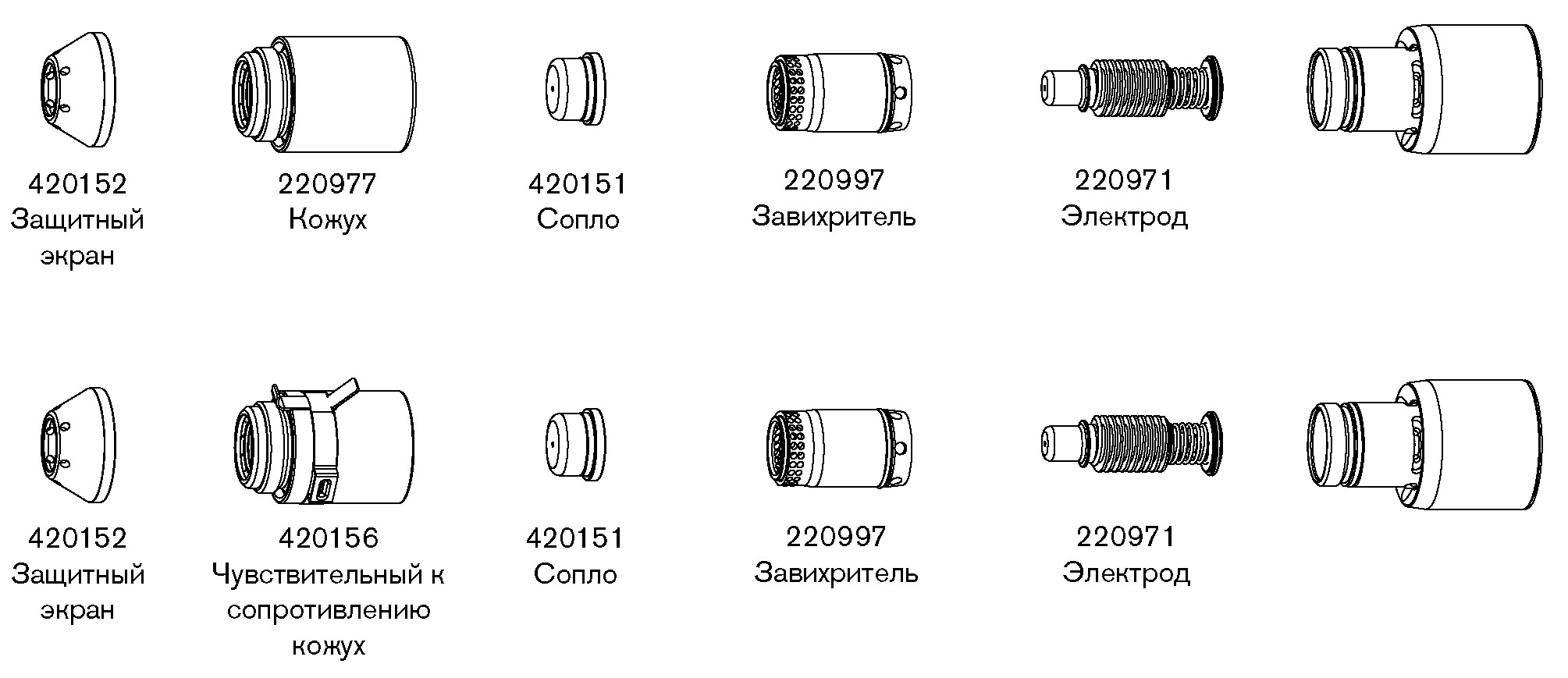 Экранированные расходные детали для механизированного резака на 45 А и 65 А с омическим контактом