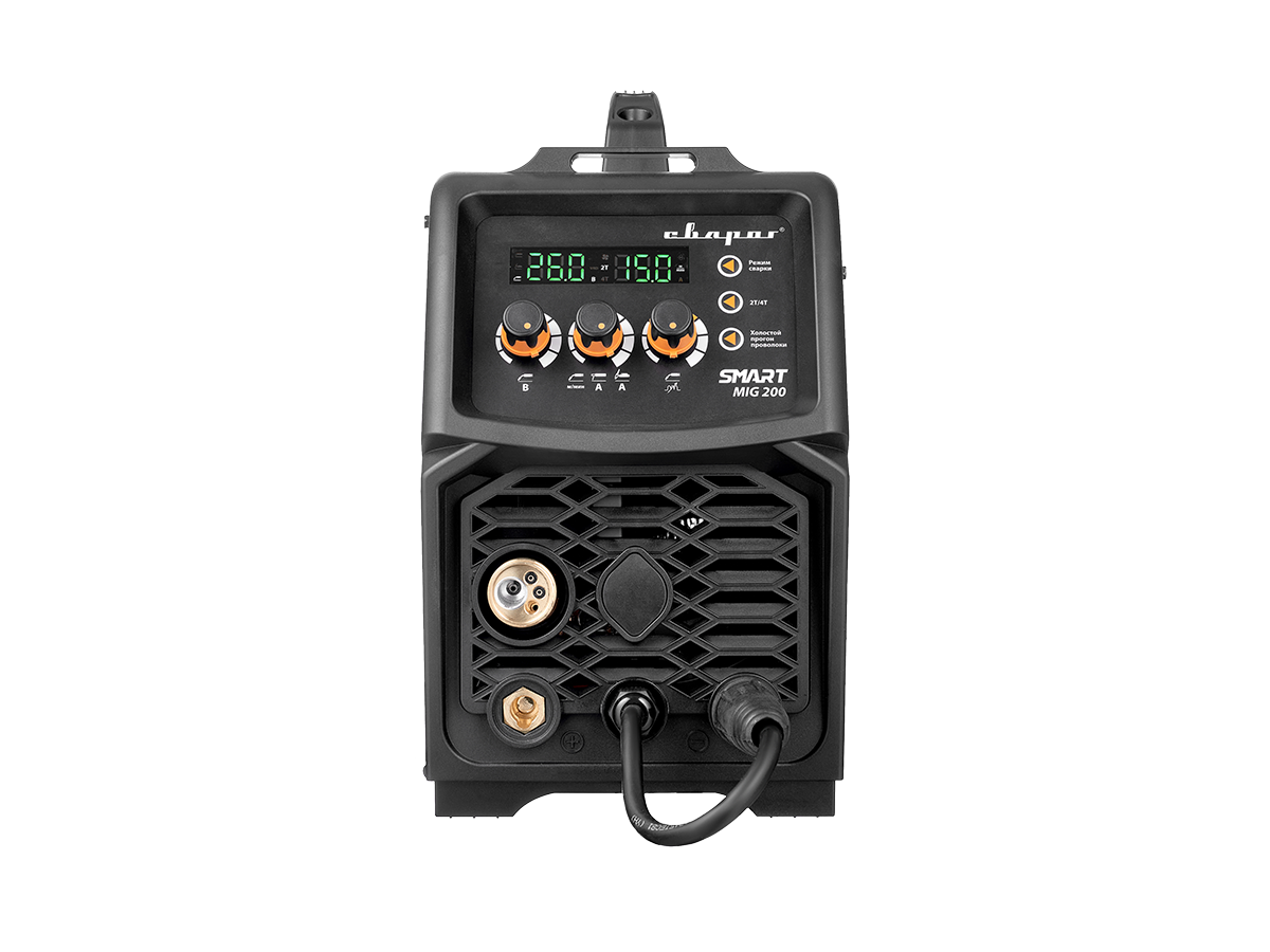 REAL SMART MIG 200 (N2A5) — универсальный, многофункциональный инвертор для полуавтоматической сварки сплошными и порошковыми проволоками (MIG/MAG), для ручной дуговой сварки покрытыми электродами (MMA), а также аргонодуговой сварки неплавящимся электродом (TIG). Все режимы являются полноценными и каждый содержит большой набор вспомогательных функций.