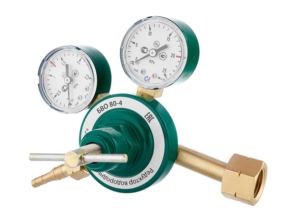 РЕДУКТОР ВОДОРОДНЫЙ БВО 80—4 С ПОВЕРЕННЫМ МАНОМЕТРОМ предназначен для понижения давления поступающего из баллона газа и автоматического поддержания постоянным заданного рабочего давления при газопламенной обработке и смежных процессах.
