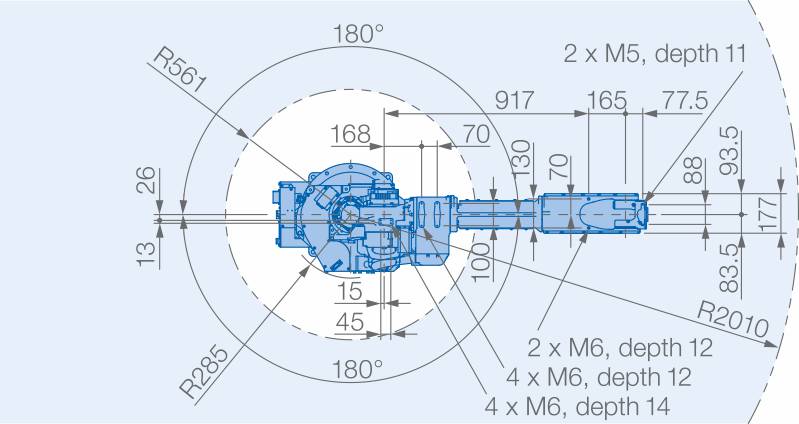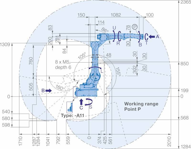 Обладая высокой полезной нагрузкой до 12 кг и широким рабочим диапазоном 2010 мм, этот робот поддерживает сварку крупногабаритных деталей и монтаж широкого спектра тяжелого сварочного и режущего оборудования.