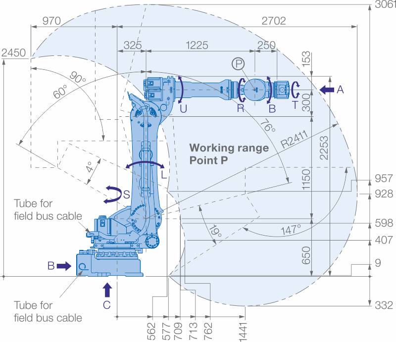 MOTOMAN MS210 предлагает большой диапазон движения и оснащен внешними кабелями для гибкой установки больших сварочных пистолетов, что способствует увеличению количества точек сварки на манипулятор. Ширина MOTOMAN MS210 была уменьшена на 625 мм, площадь установки также была уменьшена. Кроме того, полезная нагрузка была увеличена до 210 кг.