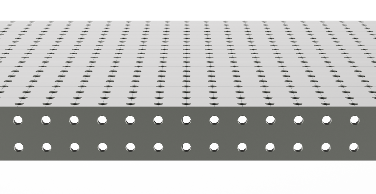 Столешница оборудована координатно-расположенными монтажными отверстиями, и возможно нанесение координатной сетки на верхнюю рабочую поверхность – опционально.