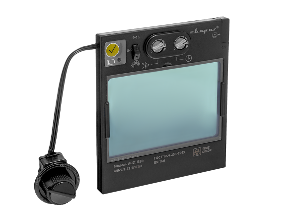 Светофильтр автоматический B50 с затемнением 5– 9 и 9– 13DIN предназначен для защиты глаз и лица сварщика от брызг расплавленного металла и горячих частиц, а также от неионизирующих воздействий излучений и механических воздействий. Предназначен для установки в щиток PRO B50