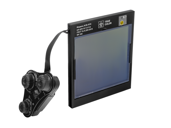 Светофильтр автоматический B70 с затемнением 5– 9 и 9– 13DIN предназначен для защиты глаз и лица сварщика от брызг расплавленного металла и горячих частиц, а также от неионизирующих воздействий излучений и механических воздействий. Предназначен для установки в щиток PRO B70