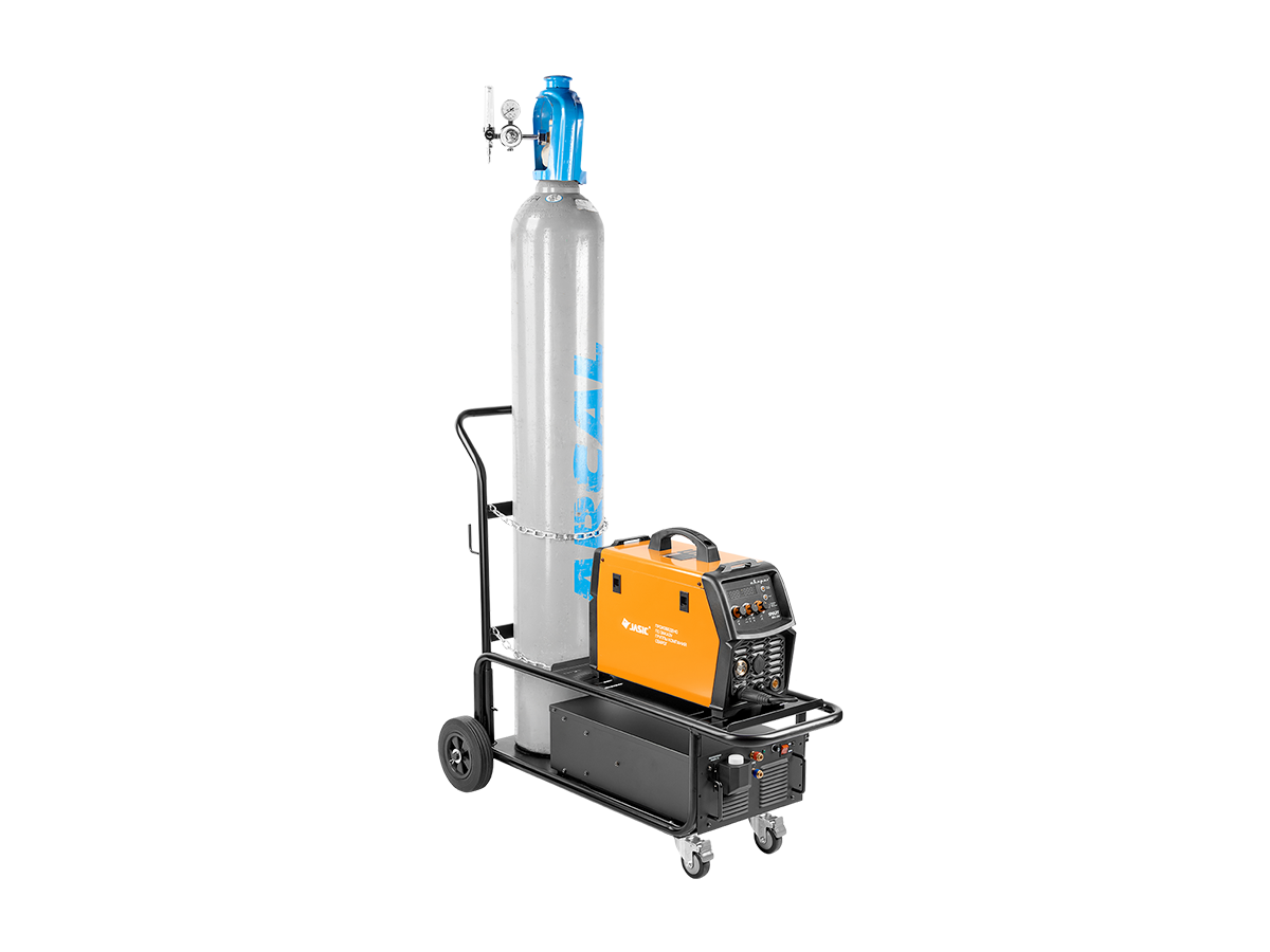 На тележку можно установить сварочный источник, подающее устройство, кулер, а также газовый баллон. На платформе тележки предусмотрены крепления для фиксации, а крепежные отверстия позволяют закрепить оборудование разных габаритов.