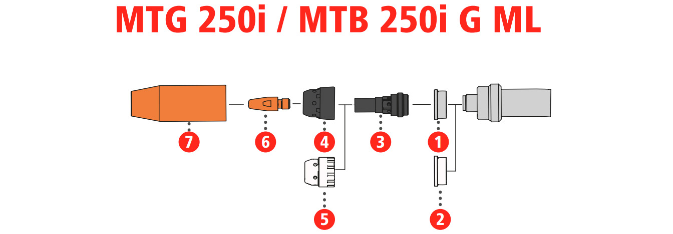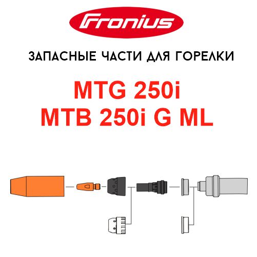 Расходные детали (запчасти) для ручной сварочной горелки MIG/MAG с газовым охлаждением MTG 250i